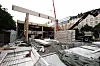 Den midlertidige markedshallen er blitt en interessant kombinasjon av tre, glass og plast. Alle disse materialene er lette å bearbeide og rimelige; noe som gjør dem til det beste valget for midlertidig bruk.