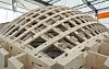 Wisdome er en spektakulær trebygning som tar form utenfor det tekniske museet i Stockholm. Takbjelkene bøyer seg i både side- og høyderetning under en kuppel i tre.
